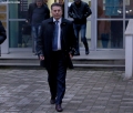 MEDIU AT GJKKO - The chairman of the republican party and former defense minister, Fatmir Mediu, leaving from a court session of the Special Court for Corruption and Organized Crime, GJJKO on the case of the Gerdec tragedy, where the next witnesses were questioned. The media is accused of abuse of office.