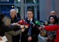 The chairman of the republican party and former minister of defense, Fatmir Mediu, speaking to the journalists after leaving from a court session of the Special Court for Corruption and Organized Crime, GJJKO on the case of the Gerdec tragedy, where the next witnesses were questioned. The media is accused of abuse of office.