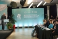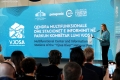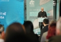 The representative of the studio Casanova and Hernandez during the ceremony organized to announce the winning studio for the multifunctional center and information points for the Vjoses national park. At the end of the ceremony, the Danish studio CEBRA architecture was declared the winner. The Vjosa River was declared a national park after an international awareness campaign, which also included the actor Leonardo DiCaprio.