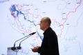Prime Minister Edi Rama during the ceremony organized to announce the winning studio for the multifunctional center and information points for the national park of Vjosa. At the end of the ceremony, the Danish studio CEBRA architecture was declared the winner. The Vjosa River was declared a national park after an international awareness campaign, which also included the actor Leonardo DiCaprio.