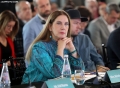 Director of Urban Planning Agency Territory, Adelina Greca during the ceremony organized to announce the winning studio for the multifunctional center and information points for the Vjoses national park. At the end of the ceremony, the Danish studio CEBRA architecture was declared the winner. The Vjosa River was declared a national park after an international awareness campaign, which also included the actor Leonardo DiCaprio.
