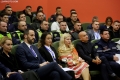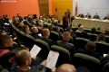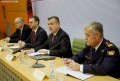 Deputy Minister of the Interior, Besfort Lamallari and police officers during a press conference of Minister Balla and Mete where the first employees of the State Police who meet the criteria to get zero interest loans for housing were announced. The government program foresees that by 2025, there will be at least 900 beneficiary families of police officers in need of housing.