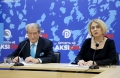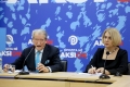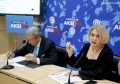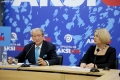 The head of the Department of Education in DP, Lili Sula and former Prime Minister Sali Berisha speaking during a press conference from the premises of the DP headquarters, during which they commented on the results of the PISA 2022 program, which marked a decline in all categories for Albania. During the conference, Berisha attacked the government for destroying the education system.