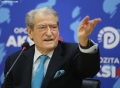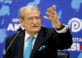 Former Prime Minister Sali Berisha speaking during a press conference from the premises of the DP headquarters, during which he and Lili Sula commented on the results of the PISA 2022 program, which marked a decline in all categories for Albania. During the conference, Berisha attacked the government for destroying the education system.