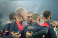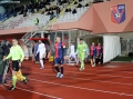 Players and referees enter the field before the football match, Vllaznia of Shkodra - Dinamo Tirana, 3-1, valid for the Albanian Super League, played at the Loro Borici stadium in Shkodra.