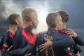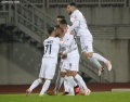 Dinamo players celebrate scoring a goal during the football match, Vllaznia of Shkodra - Dinamo Tirana, 3-1, valid for the Albanian Super League, played at the Loro Borici stadium in Shkodra.