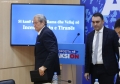 Former Prime Minister Sali Berisha and Belind Kellici leaving a press conference at the PD headquarters. Berisha and Kellici spoke about the case of the Tirana Incinerator, while Berisha said that SPAK's request to the parliament on him is an attack on the opposition and not on him.