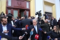 Former Prime Minister Sali Berisha during the clashes between the DP MPs and the members of the Guard, while trying to enter the premises of the parliament. Sali Berisha and other expelled members of the opposition have not been allowed to enter the hall, as a result of the recent tensions in the parliament.