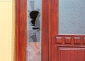 The broken glass of the door of the parliament after the clash between the members of the guard of the republic and some MPs of the DP. The members of the Guard have prevented the entry of the former Prime Minister Sali Berisha and some DP MPs into the parliament hall, as they were excluded as a result of the tensions caused during the last parliamentary sessions.