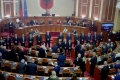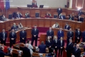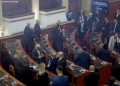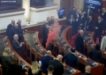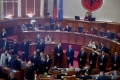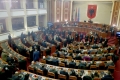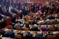 Majority MPs vote during a parliamentary session, where MP Edmond Spaho lit a smoker. The members of the Guard have prevented the entry of the former Prime Minister Sali Berisha and some DP MPs into the parliament hall, as they were excluded as a result of the tensions caused during the last parliamentary sessions.
