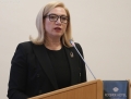 Minister of Justice, Ulsi Manja speaking during the Annual Conference of the ombudsman on the theme 75th Anniversary of the Universal Declaration for Human Rights and the 25th Anniversary of the Constitution of Albania: The Evolution of Human Rights in Albania.