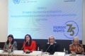 MP Ermonela Felaj, Ombudsman, Erinda Ballanca and the president of the Constitutional Court, Holta Zacaj during the Annual Conference of the ombudsman on the theme 75th Anniversary of the Universal Declaration for Human Rights and the 25th Anniversary of the Constitution of Albania: The Evolution of Human Rights in Albania.