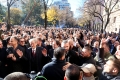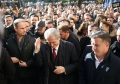 Former Prime Minister Sali Berisha meeting fans during a rally in front of the headquarters of the parliament. The rally was organized while the meeting of the council for the regulation and the mandates to examine the request of SPAK to remove Berisha's immunity was taking place, for the case of the former Partizani complex.