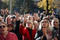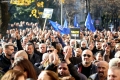 DP supporters during a rally of former prime minister Sali Berisha in front of the headquarters of parliament. The rally was organized while the meeting of the council for the regulation and the mandates to examine the request of SPAK to remove Berisha's immunity was taking place, for the case of the former Partizani complex.