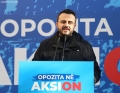 Belind Kellici speaking during a rally of former prime minister Sali Berisha in front of the headquarters of parliament. The rally was organized while the meeting of the council for the regulation and the mandates to examine the request of SPAK to remove Berisha's immunity was taking place, for the case of the former Partizani complex.