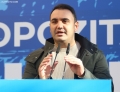 Head of the DP Youth Forum, Besart Xhaferri speaking during a rally of former prime minister Sali Berisha in front of the headquarters of parliament. The rally was organized while the meeting of the council for the regulation and the mandates to examine the request of SPAK to remove Berisha's immunity was taking place, for the case of the former Partizani complex.