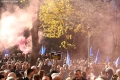 DP supporters ignite smokers and wave flags during a rally of former prime minister Sali Berisha in front of the headquarters of parliament. The rally was organized while the meeting of the council for the regulation and the mandates to examine the request of SPAK to remove Berisha's immunity was taking place, for the case of the former Partizani complex.