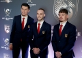 The players of Tirana, Florent Hasani, Filip Najdovski and Florjan Pergjoni before the AFF gala ceremony Best 2023, where awards were given for achievements in Albanian football for 2023, for men and women, organized in the premises of the Theater of Opera and Ballet.