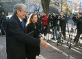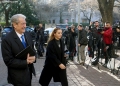 Former Prime Minister Sali Berisha and MP Albana Vokshi entering a meeting of the parliamentary group with the MPs who support the former prime minister Sali Berisha, after the decision of the council of mandates and the regulation for the removal of immunity for Berisha.