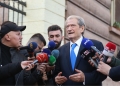 MP Gazment Bardhi speaking to journalists, after a meeting of the DP parliamentary group with MPs who support former Prime Minister Sali Berisha. The meeting was organized one day after the decision of the Council of Mandates and the regulation on the removal of immunity for Berisha. Berisha and Bardhi attacked Prime Minister Edi Rama and said that the actions in the parliament will continue.