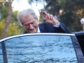 Former Prime Minister Sali Berisha entering the car after speaking to journalists, after a meeting of the DP parliamentary group with MPs who support former Prime Minister Sali Berisha. The meeting was organized one day after the decision of the Council of Mandates and the regulation on the removal of immunity for Berisha. Berisha and Bardhi attacked Prime Minister Edi Rama and said that the actions in the parliament will continue.