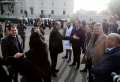 Former Prime Minister Sali Berisha meeting MPs of the DP outside the parliament premises. After the decision of the mandates and regulation council to remove Berisha's parliamentary immunity, a vote will be held in the parliament to ratify or not the decision.