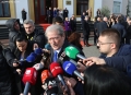 Former Prime Minister Sali Berisha speaking for journalists outside the parliament premises. After the decision of the mandates and regulation council to remove Berisha's parliamentary immunity, a vote will be held in the parliament to ratify or not the decision.