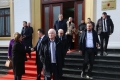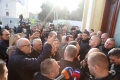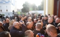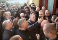 Former Prime Minister Sali Berisha debating with guards outside the parliament premises. After the decision of the mandates and regulation council to remove Berisha's parliamentary immunity, a vote will be held in the parliament to ratify or not the decision.