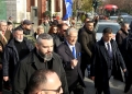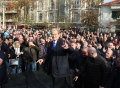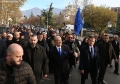 Former prime minister Sali Berisha and his supporters walking towards the headquarters of the democratic party after a rally in front of the parliament, after a parliamentary session. After the tensions in the hall, at the end of the session, it was approved with 75 votes in favor of removing the parliamentary immunity for Berisha. SPAK made a request to impose an arrest security measures on Berisha in relation to the case of the former Partizani complex, since he did not comply with the measure of obligation to appear previously imposed.