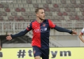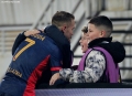 Ildi Gruda celebrates with children during the football match, Vllaznia of Shkodra - Skenderbeu of Korca, 5-0, valid for the Albanian Super League, played at the Loro Borici stadium in Shkodra.