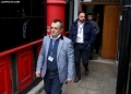 Judicial Police officers leaving the apartment of former Prime Minister Sali Berisha on Mustafa Matohiti street, after they officially communicated the security measure house arrest with police supervision for the accusations against him in the case of the former Partizani complex . The Special Court of Appeals for Corruption and Organized Crime accepted SPAK's request to impose this measure, since Berisha did not comply the mandatory appearance measure.
