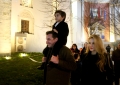 The Mayor of Tirana, Erion Veliaj and his family arrive at Skanderbeg Square during the New Year celebrations in the center of Tirana on January 1.