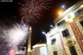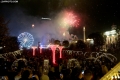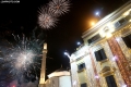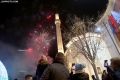 Citizens celebrating and photographing the fireworks under the statue of Skanderbeg in Skanderbeg Square in the center of Tirana at the time of the change of years.