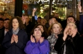 A note wishing DP supporters a happy new year at the entrance of former Prime Minister Sali Berisha's apartment on Mustafa Matohiti Street. Argita Berisha and Berisha's supporters gathered below the apartment in support of the former prime minister after the decision on house arrest for him.
