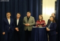 MPs Enkelejd Alibeaj, Seladin Jakupllari, Kreshnik Collaku and Orjola Pampuri during a ceremony organized for the 33rd anniversary of the newspaper Rilindja Demokratike, the official newspaper of the democratic party. During it, chairman Basha spoke about the political situation, while he tried not to comment on the measure of house arrest for former Prime Minister Berisha.