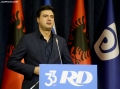 Journalist Prec Zogaj speaking during a ceremony organized for the 33rd anniversary of the newspaper Rilindja Demokratike, the official newspaper of the democratic party. During it, chairman Basha spoke about the political situation, while he tried not to comment on the measure of house arrest for former Prime Minister Berisha.