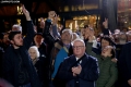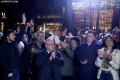 SUPPORTERS OF BERISHA BELOW THE APARTMENT - Former Prime Minister Sali Berisha's lawyer, Genc Gjokutaj, MP Oerd Bylykbashi, Belind Kellici and supporters of Sali Berisha and DP in Mustafa Matohiti street, where Sali Berisha's apartment is located. They have gathered below the apartment in support of the former prime minister after the house arrest decision for him, to listen to him while he speaks from the balcony of the apartment.