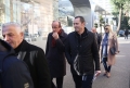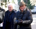 MPs Dashnor Sula and Isuf Celaj entering the headquarters of the parliament to take part in a meeting of the parliamentary group of the DP. The MPs who support the former prime minister Sali Berisha and the MP Gazment Bardhi were present at the meeting, while due to the security measures, Berisha did not participate.