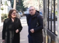 MPs Dhurata Cupi and Saimir Korreshi entering the headquarters of the parliament to take part in a meeting of the parliamentary group of the DP. The MPs who support the former prime minister Sali Berisha and the MP Gazment Bardhi were present at the meeting, while due to the security measures, Berisha did not participate.