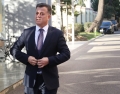 MP Bledjon Nallbati entering the headquarters of the parliament to take part in a meeting of the parliamentary group of the DP. The MPs who support the former prime minister Sali Berisha and the MP Gazment Bardhi were present at the meeting, while due to the security measures, Berisha did not participate.