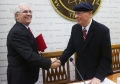 The writer Fatos Kongoli and the head of the Albanian Academy of Sciences, Skender Gjinushi during a ceremony organized by the Academy of Sciences, organized on the occasion of Kongoli's 80th anniversary. Fatos Kongoli is one of the representatives of modern Albanian literature.
