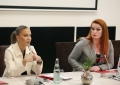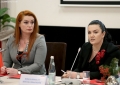 The Chairperson of the Audiovisual Media Authority, Armela Krasniqi and the CEO of Top Channel, Lori Hoxha during the meeting of AMA with Albanian media heads on the process of audience measurement. During it, the importance of this process and the various changes that can be made in the relevant organic law were discussed.