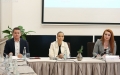 AMA MEETING FOR AUDIENCE MEASUREMENT - The Chairperson of the Audiovisual Media Authority, Armela Krasniqi, the General Secretary of AMA, Romelda Rrapollari and the CEO of Top Channel, Lori Hoxha during the meeting of AMA with Albanian media heads on the process of audience measurement. During it, the importance of this process and the various changes that can be made in the relevant organic law were discussed.