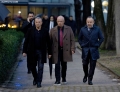 Minister of Defense, Niko Peleshi entering in the parliament building for a parliamentary session. The session marks the Sixth session of the Tenth Legislature of the Albanian parlaiment.