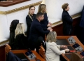 MPs Arber Agalliu, Jorida Tabaku and Oriola Nebiaj in a moment of tension during a parliamentary session. The session marks the session of the Sixth and Tenth Legislature of the Assembly of Albania, while the appointments of Blendi Gonxhe as Minister of Economy, Culture and Innovation and Adea Pirdeni as Minister of State for Administration and Anti-Corruption were approved.