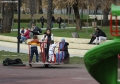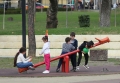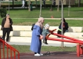 Children play at the playground at the Taiwan park in the center of Tirana. People are enjoying the high temperatures on this winter day sitting outside the bars and walking in the streets of the city.