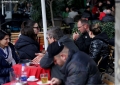 A WINTER DAY IN TIRANA - Young people drinking coffee and looking at mobile phones in a bar in the center of Tirana. People are enjoying the high temperatures on this winter day sitting outside the bars and walking in the streets of the city.