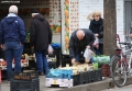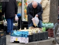 An elderly man buying fruits in a store in Tirana. People are enjoying the high temperatures on this winter day sitting outside the bars and walking in the streets of the city.
