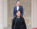 Minister of Justice, Ulsi Manja and Minister of State for Administration and Anti-Corruption, Adea Pirdeni leaving the premises of the Prime Minister's Office, after a government meeting. After the meeting, the ministers spoke on the approved decisions.