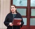 MINISTERS SPEAKING AFTER A GOVERNMENT MEETING - The Minister of Education and Sports, Ogerta Manastirliu, speaking for journalists in front of the Prime Minister's office, after a government meeting, regarding the approved decisions.